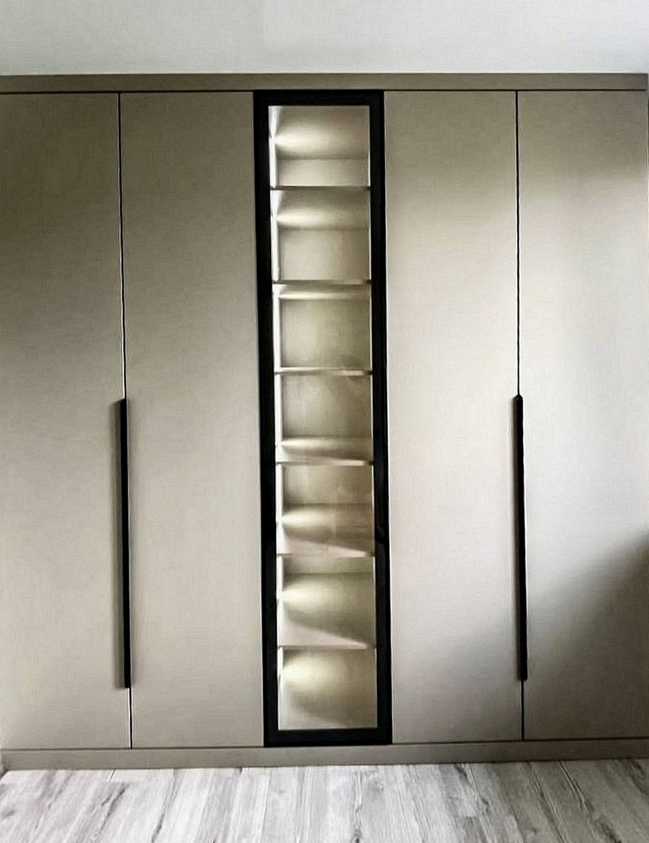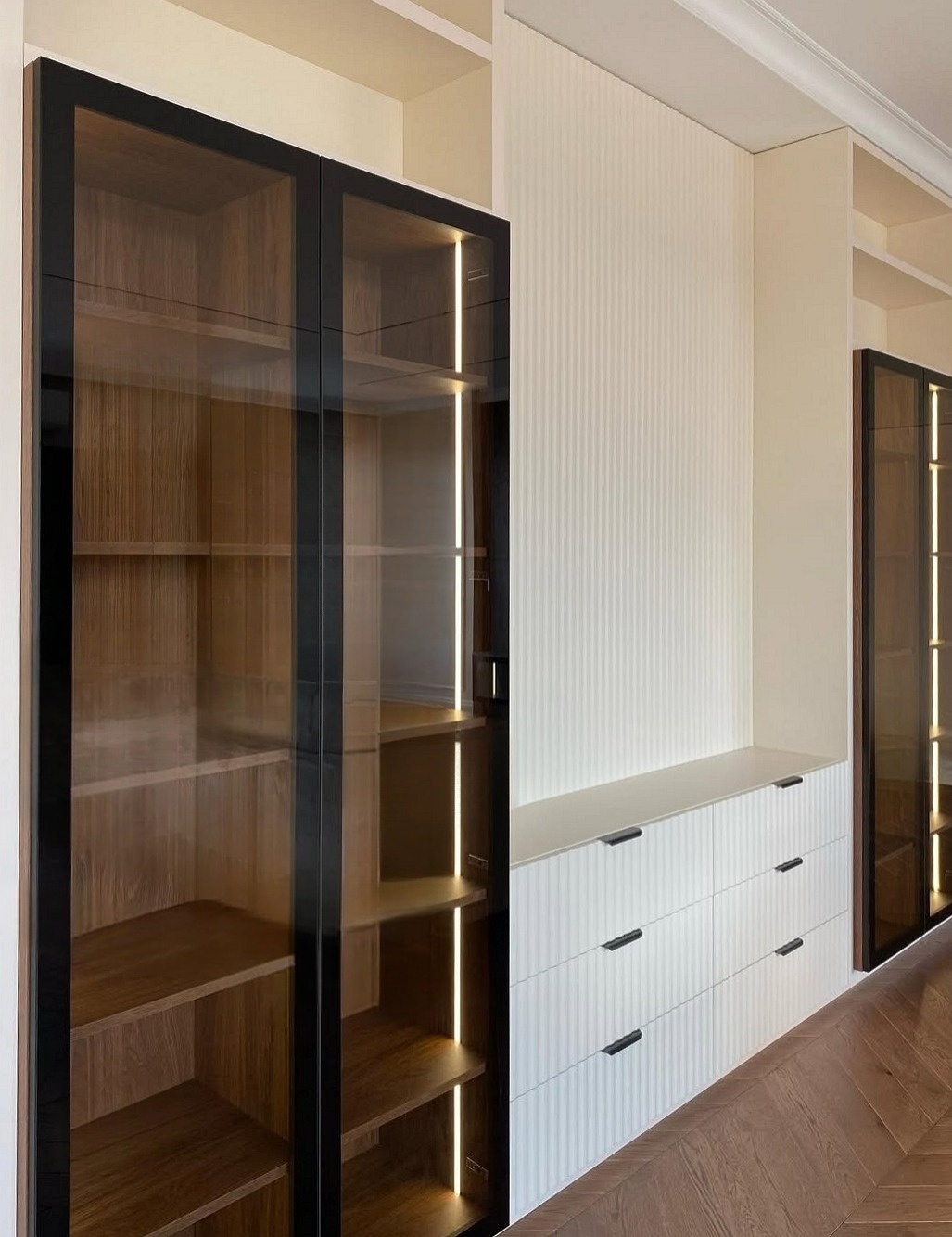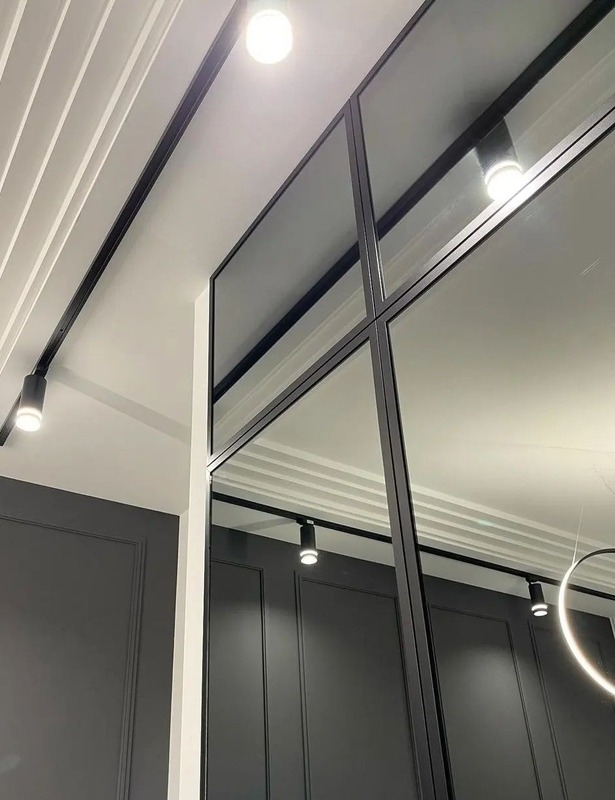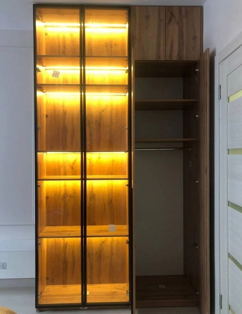 Шкаф с со стеклянными дверями в чёрном профиле с подсветкой «Модель 10»