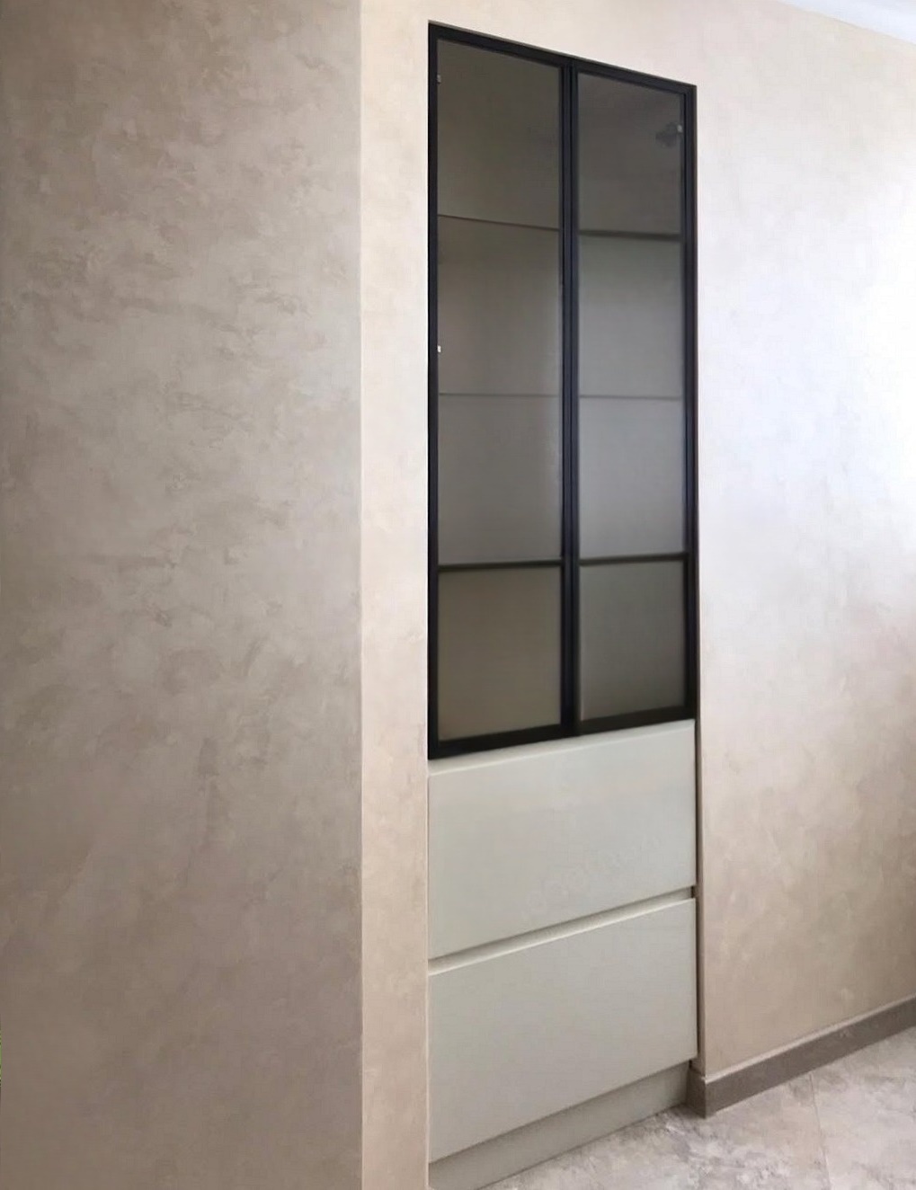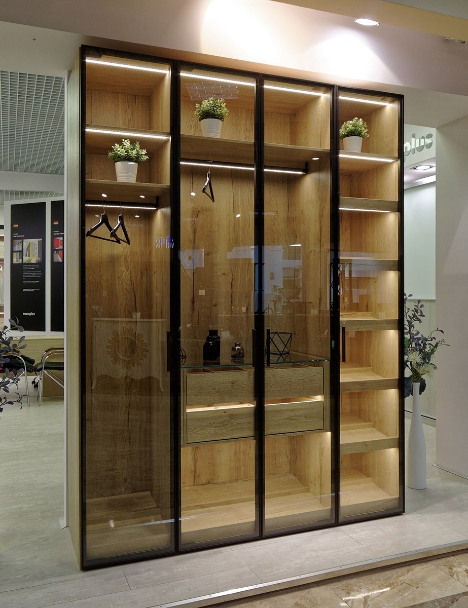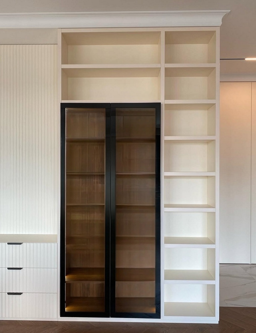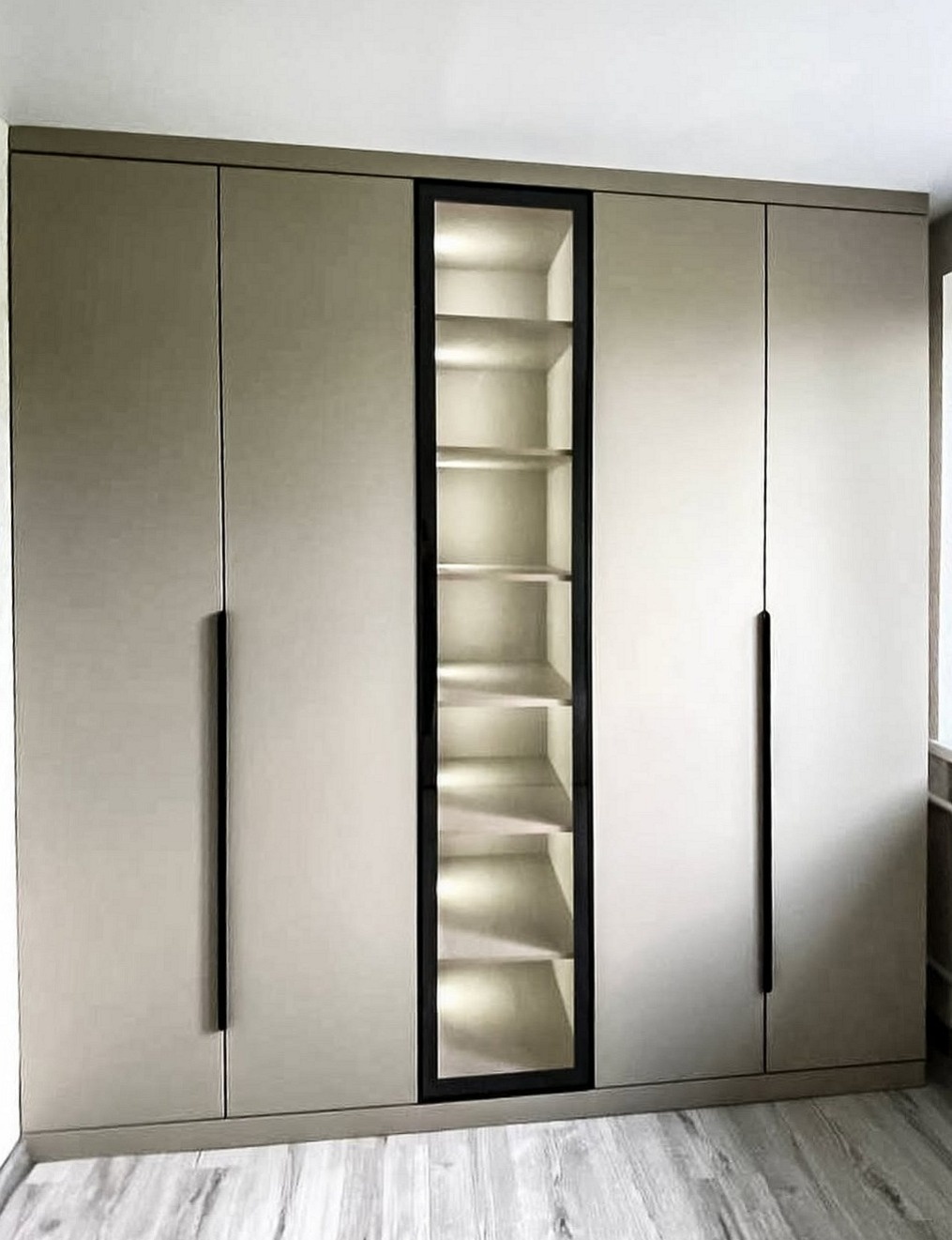 Шкаф с со стеклянными дверями в чёрном профиле с подсветкой «Модель 10»