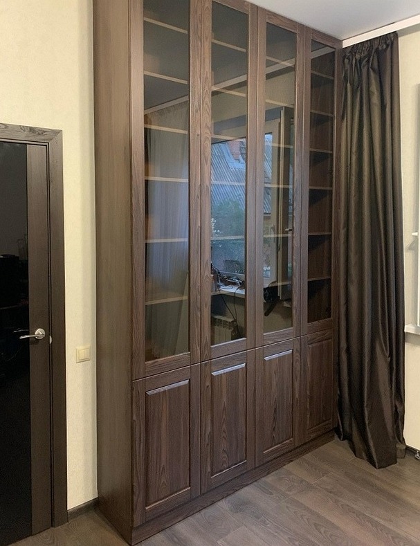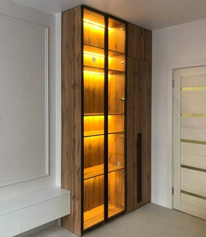 Встроенный шкаф-витрина цвета венге со стеклом «Модель 1159»