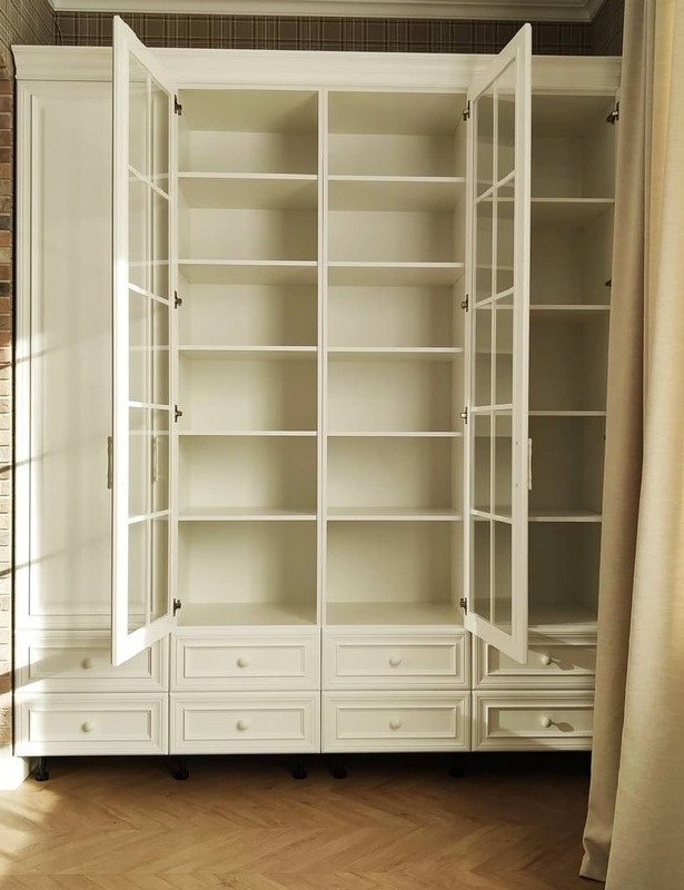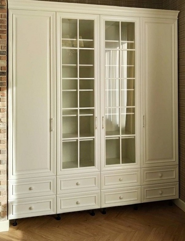 Шкаф белого цвета со стеклянными дверями в библиотеку «Модель 1120»