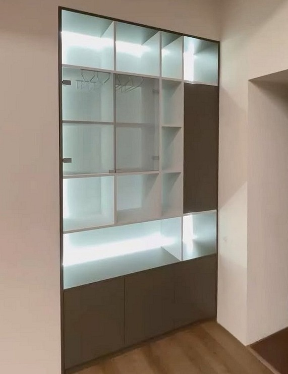 Встраиваемая прихожая со стеклянной витриной и зеркалом «Модель 205»