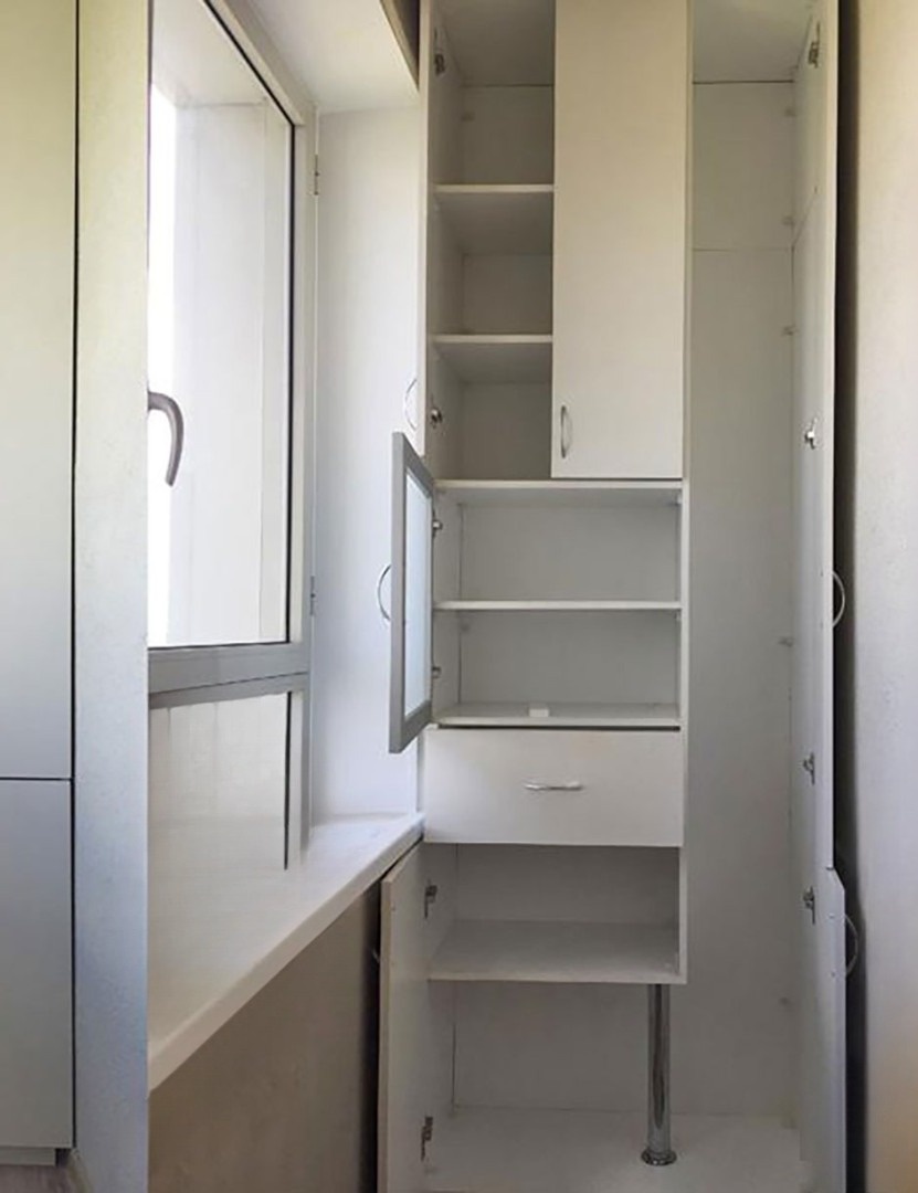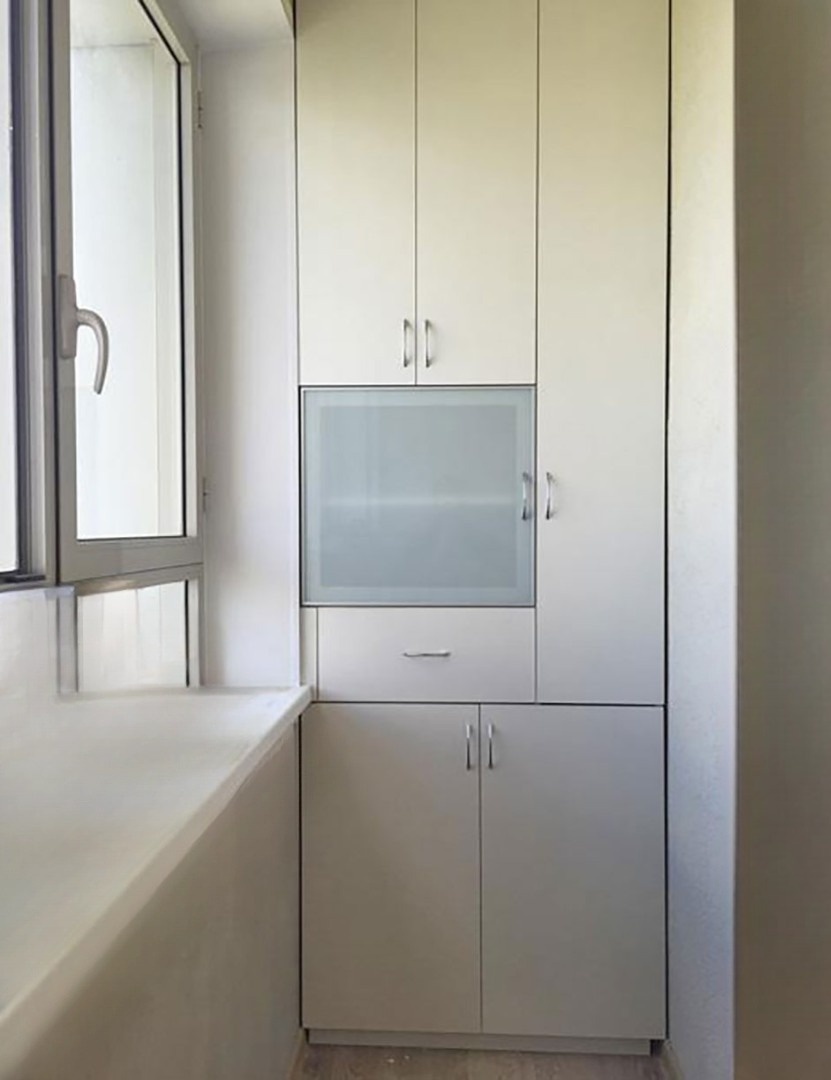 Высокий встраиваемый белый шкаф на лоджию «Модель 975»