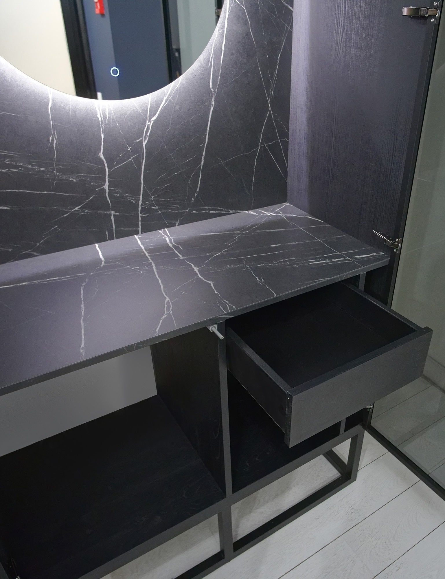 Оригинальный шкаф на заказ из черного стекла с подсветкой «Модель 1163»