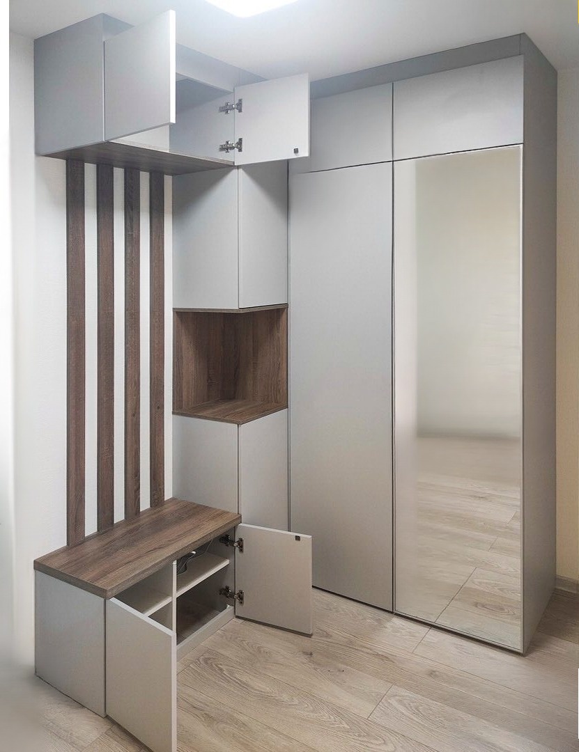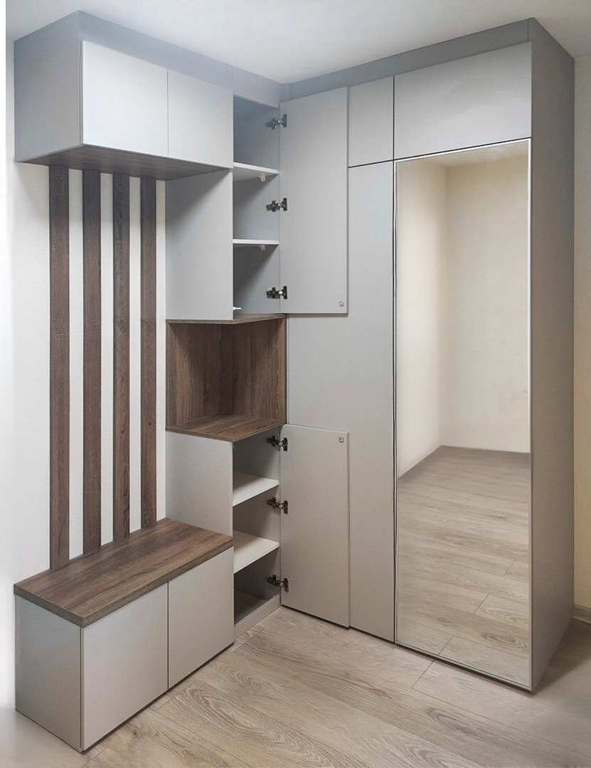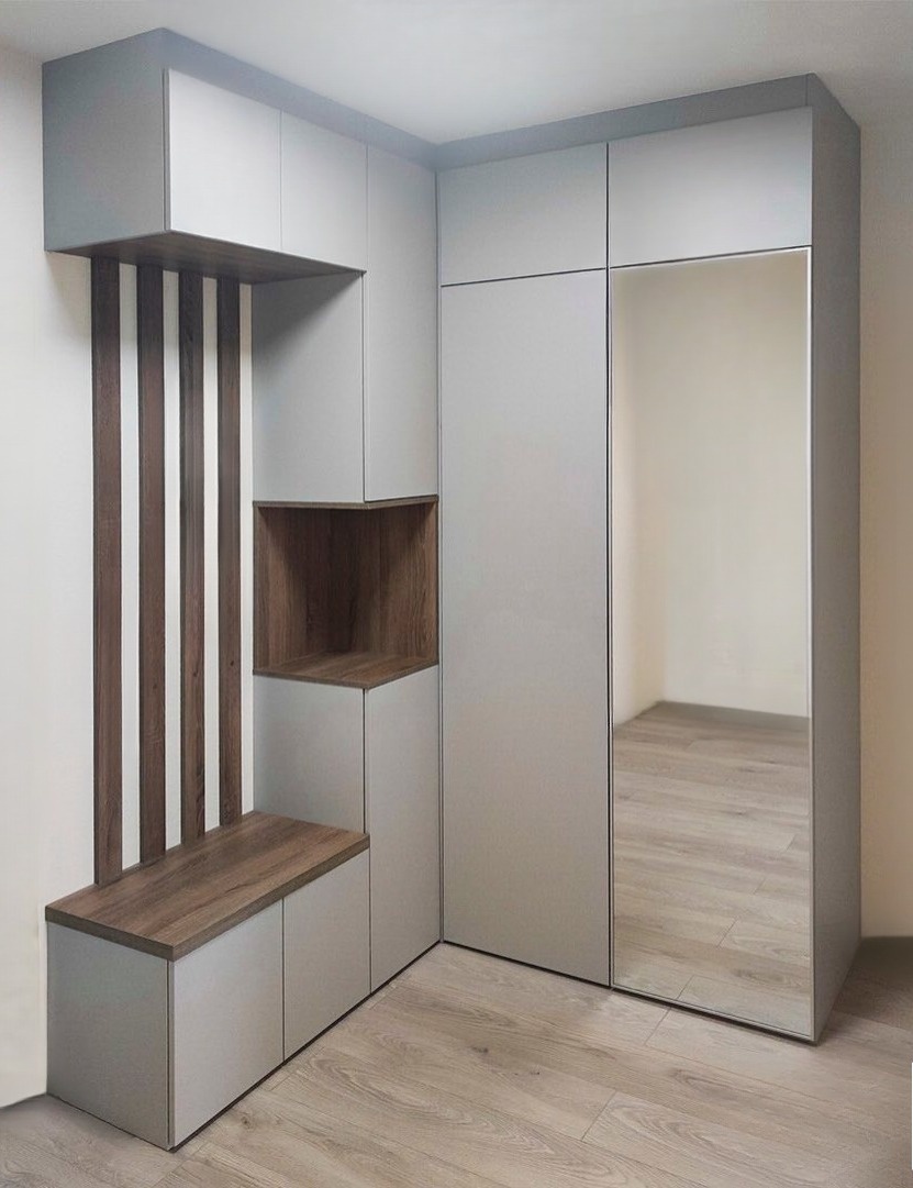 Светло-серый угловой шкаф в прихожую «Модель 825»