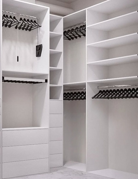 Белый открытый П-образный шкаф в гардеробную «Модель 835»