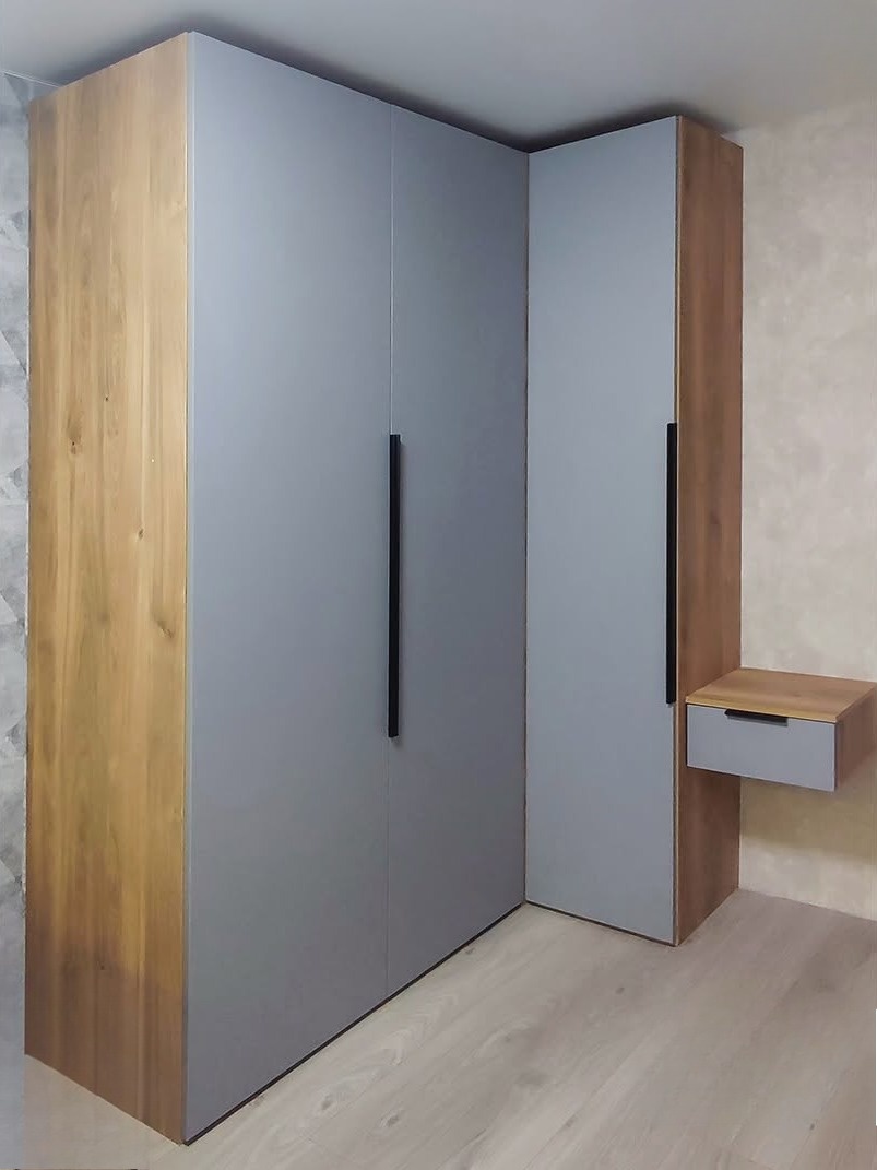Серый угловой шкаф ЛДСП с комодом на заказ «Модель 823»