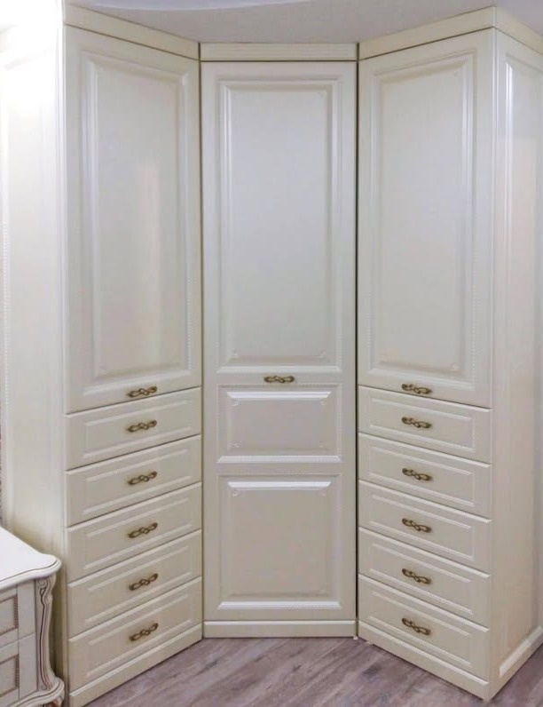 Компактный белый угловой шкаф в стиле неоклассика «Модель 839»