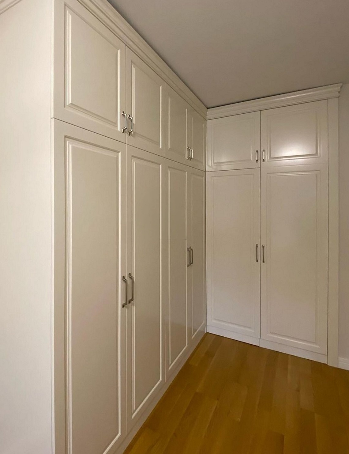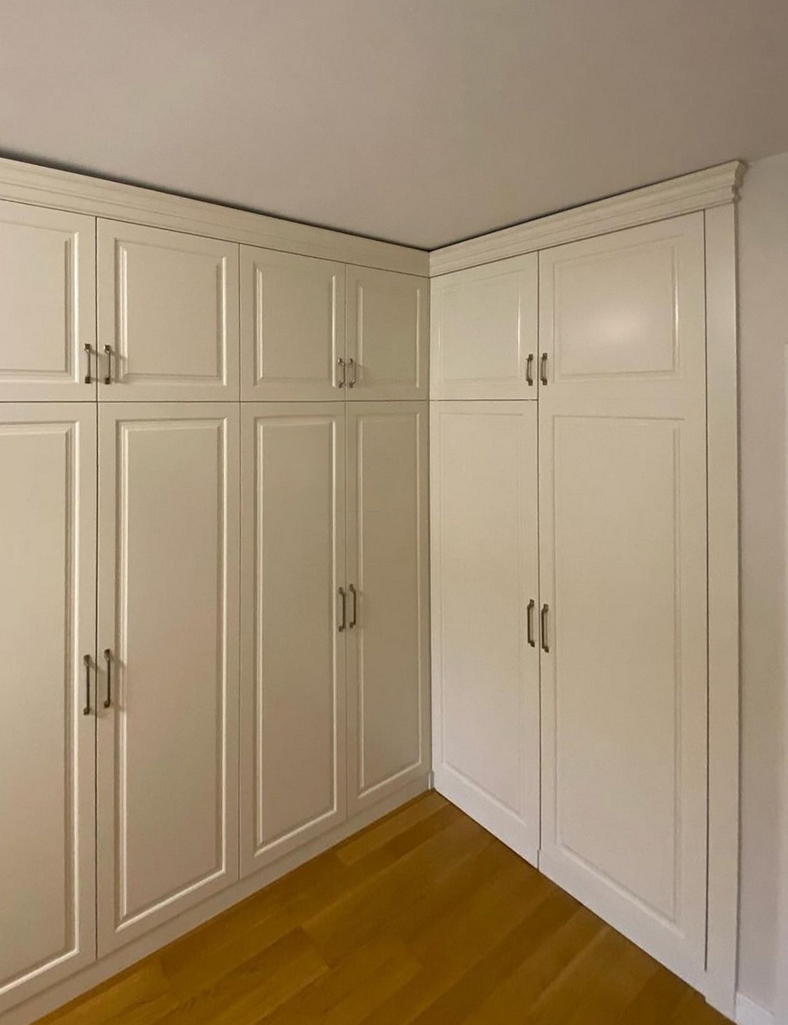 Белый угловой шкаф с фрезерованными дверями на заказ «Модель 1205»