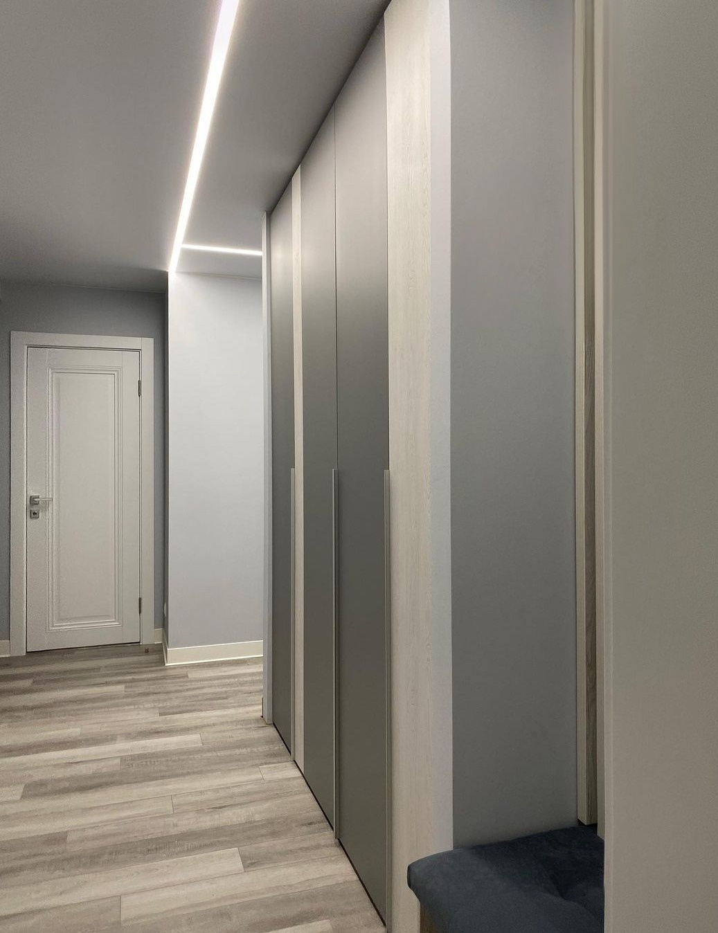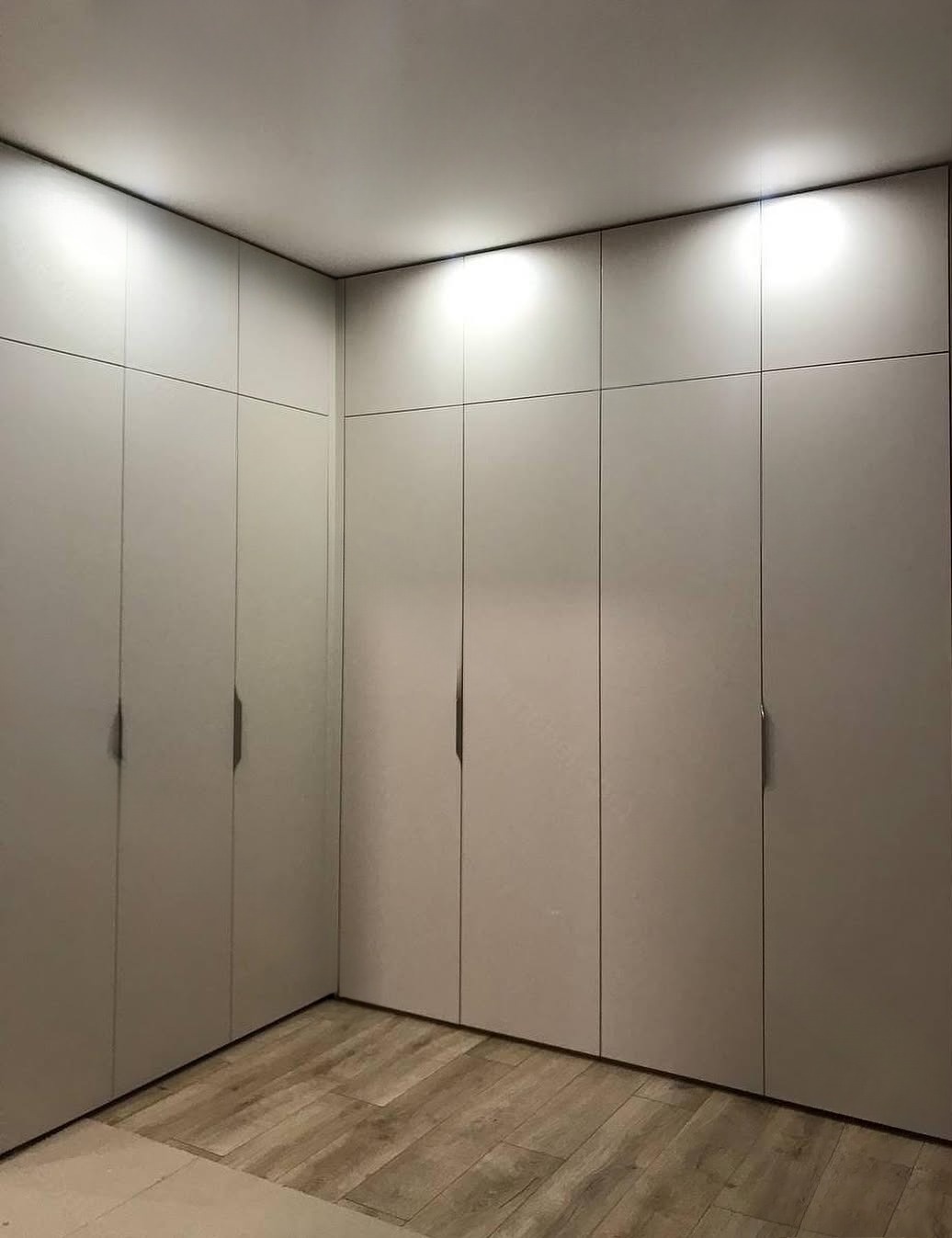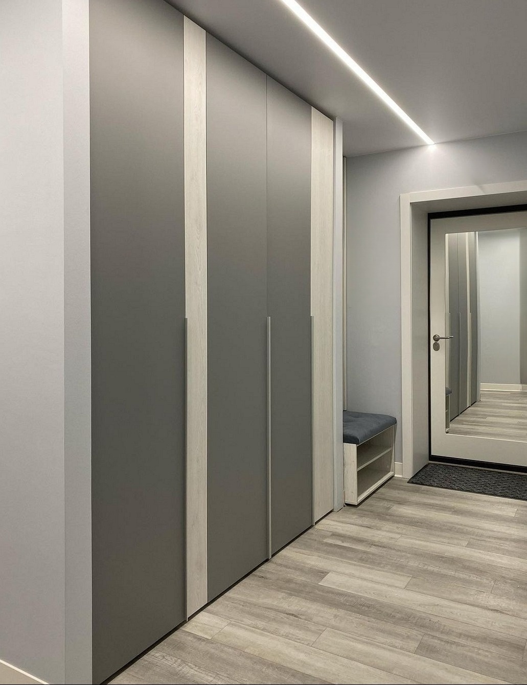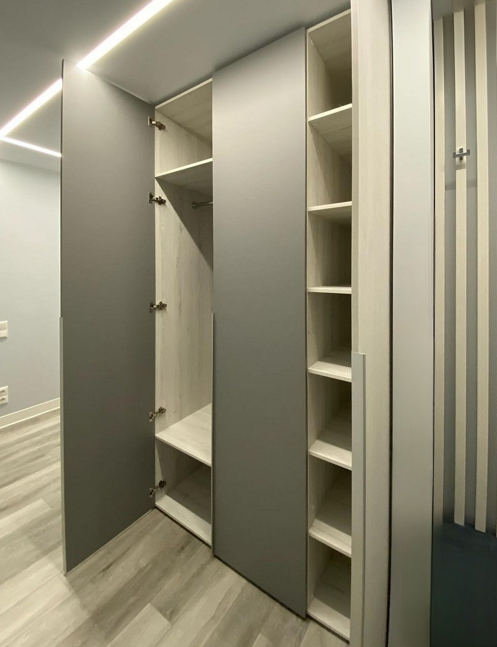 Большой встроенный распашной шкаф серого цвета из ЛДСП «Модель 434»