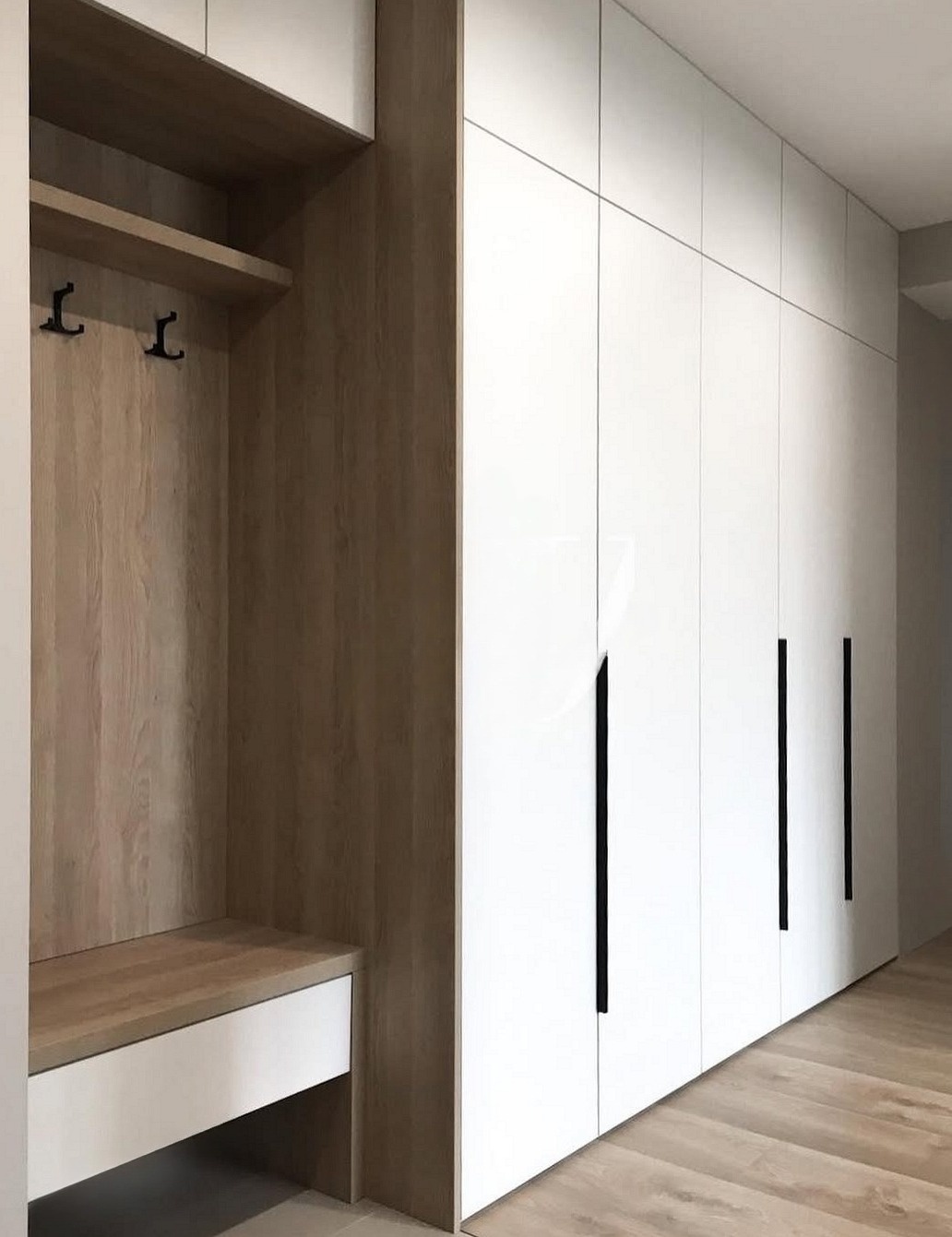 Белая встроенная прихожая из МДФ с открытой вешалкой «Модель 521»