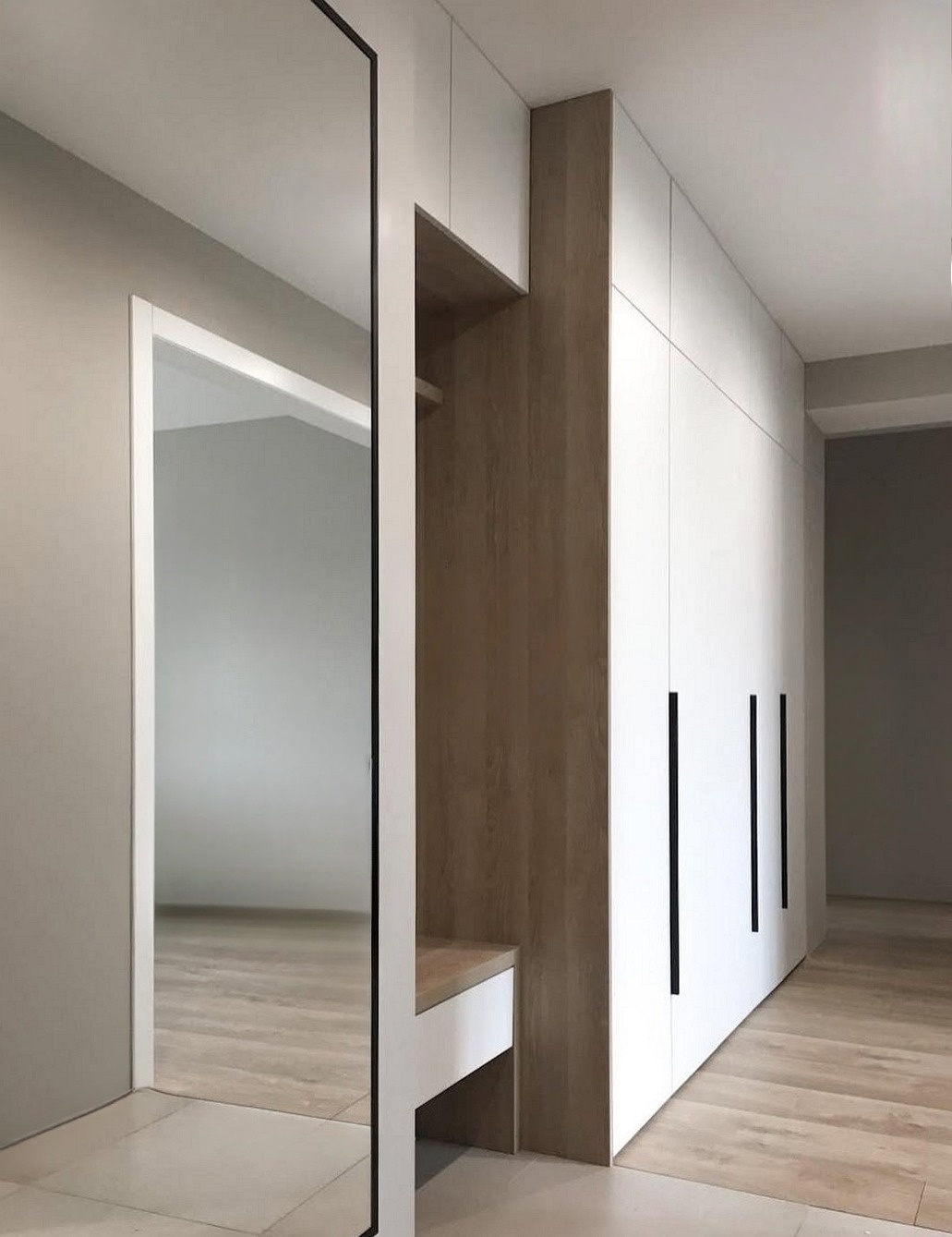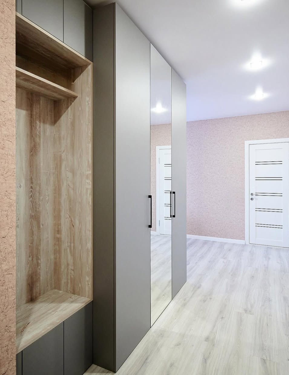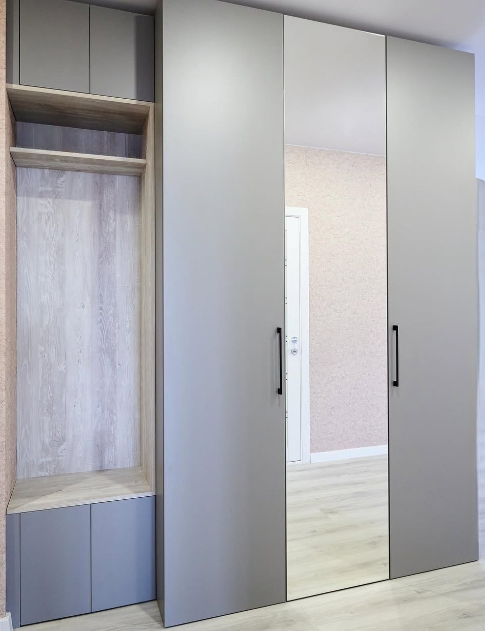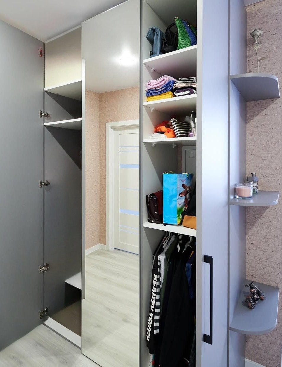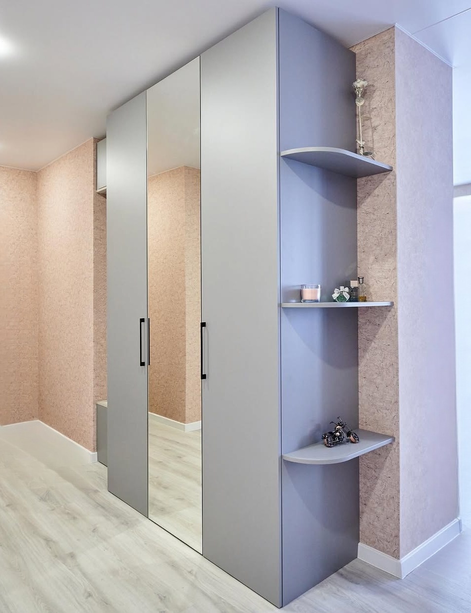Встроенная прихожая с зеркальной дверью и боковыми полками «Модель 432»