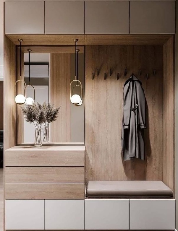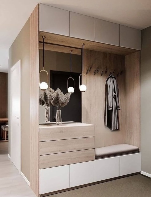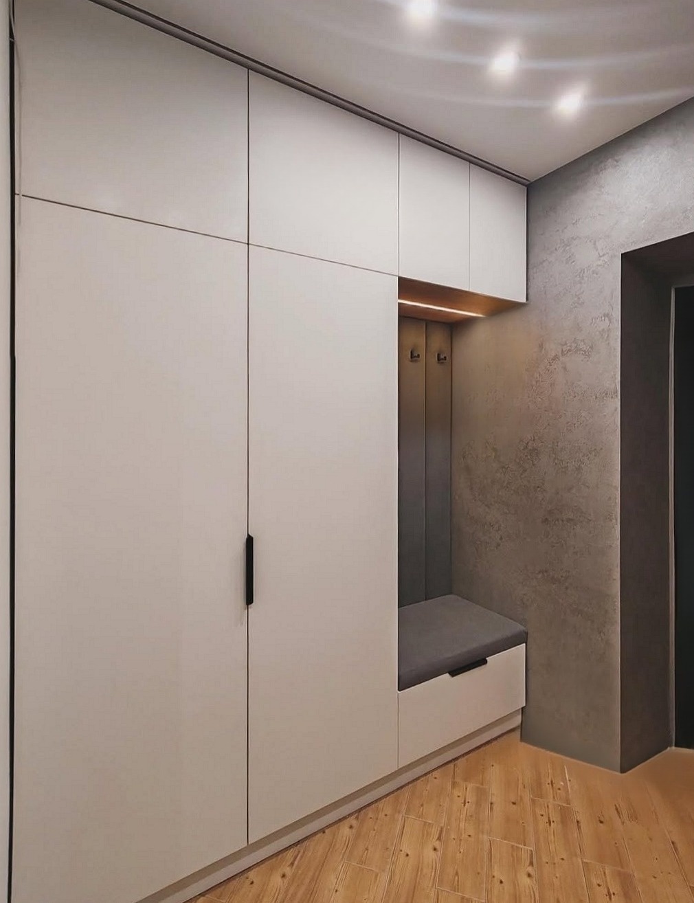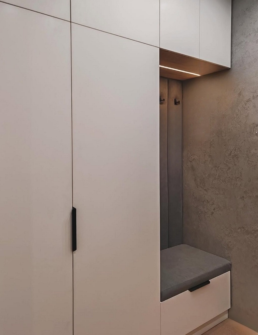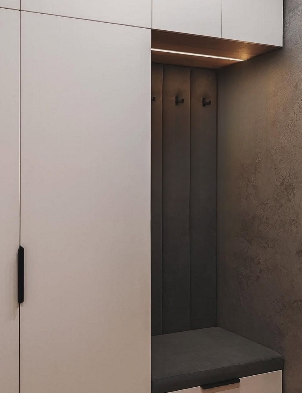 Прихожая в стиле сканди с мягкой банкеткой и вешалкой «Модель 487»