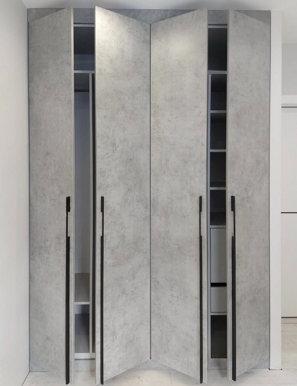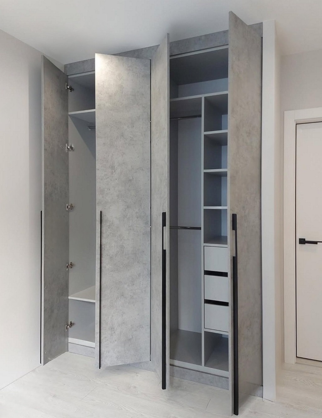 Встроенный шкаф цвета бетон с открытыми полками «Модель 423»